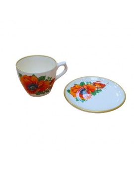 Filiżanka w kolorze kremowym. Ozdobiona motywem maków. Wykonany z użytkowej ceramiki szlachetnej. Wyprodukowany w Polsce przez fabrykę ceramiki szlachetnej w Mieroszowie. Ceramikę można myć w domowych zmywarkach oraz używać w mikrofali.