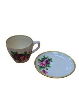 Filiżanka w kolorze kremowym. Ozdobiona motywem róży. Wykonany z użytkowej ceramiki szlachetnej. Wyprodukowany w Polsce przez fabrykę ceramiki szlachetnej w Mieroszowie. Ceramikę można myć w domowych zmywarkach oraz używać w mikrofali.