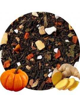 Składniki: czarna herbata (70%), kostki dyni, kawałki imbiru, aromat, liście słodkich jeżyn, goździki, kawałki cynamonu, liofilizowane kawałki dyni, liofilizowany granulat jogurtowy (jogurt z odtłuszczonego mleka, cukier, maltodekstryna, skrobia modyfikowana, substancja zakwaszająca: kwas cytrynowy).