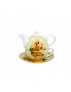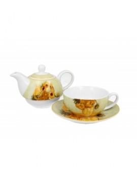 Filiżanka z dzbankiem SUNFLOWERS by V. van Gogh wchodząca w skład serii Art Gallery, wykonana z porcelany New Bone China, charakteryzującej się elegancką i naturalną kremowo - białą barwą z delikatnym połyskiem, a także wyjątkową wytrzymałością, zachowując jednocześnie lekkość i finezję.
