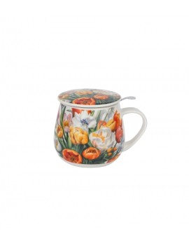 Kubek baryłka z metalowym zaparzaczem i pokrywką TULIPANY wchodzący w skład kolekcji Kwiaty Classics, wykonany z porcelany New Bone China, charakteryzującej się elegancką i naturalną kremowo - białą barwą z delikatnym połyskiem a także wyjątkową wytrzymałością przy zachowaniu lekkości i delikatności.